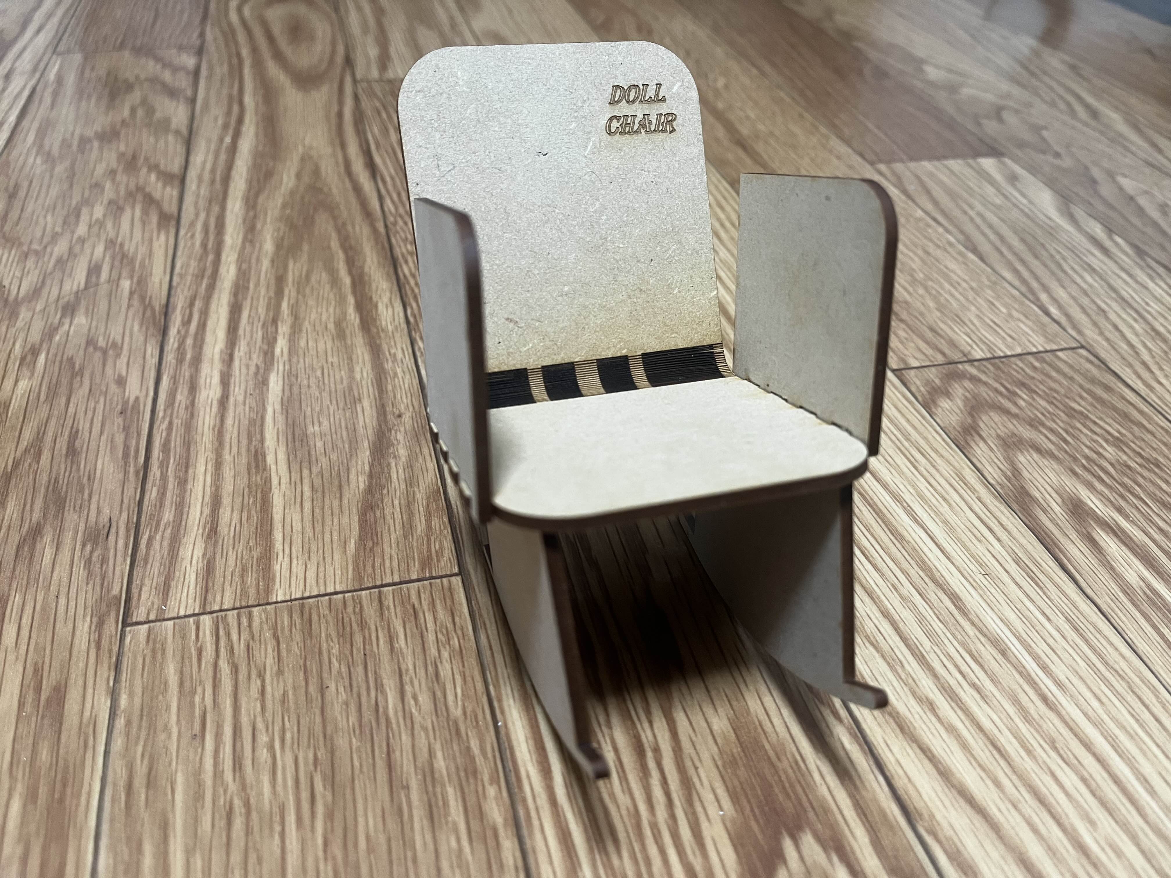 自分が欲しいと感じたぬいぐるみサイズの椅子をつくりました。こだわった点は、座面と背もたれを折り曲げるためにLiving Hinges